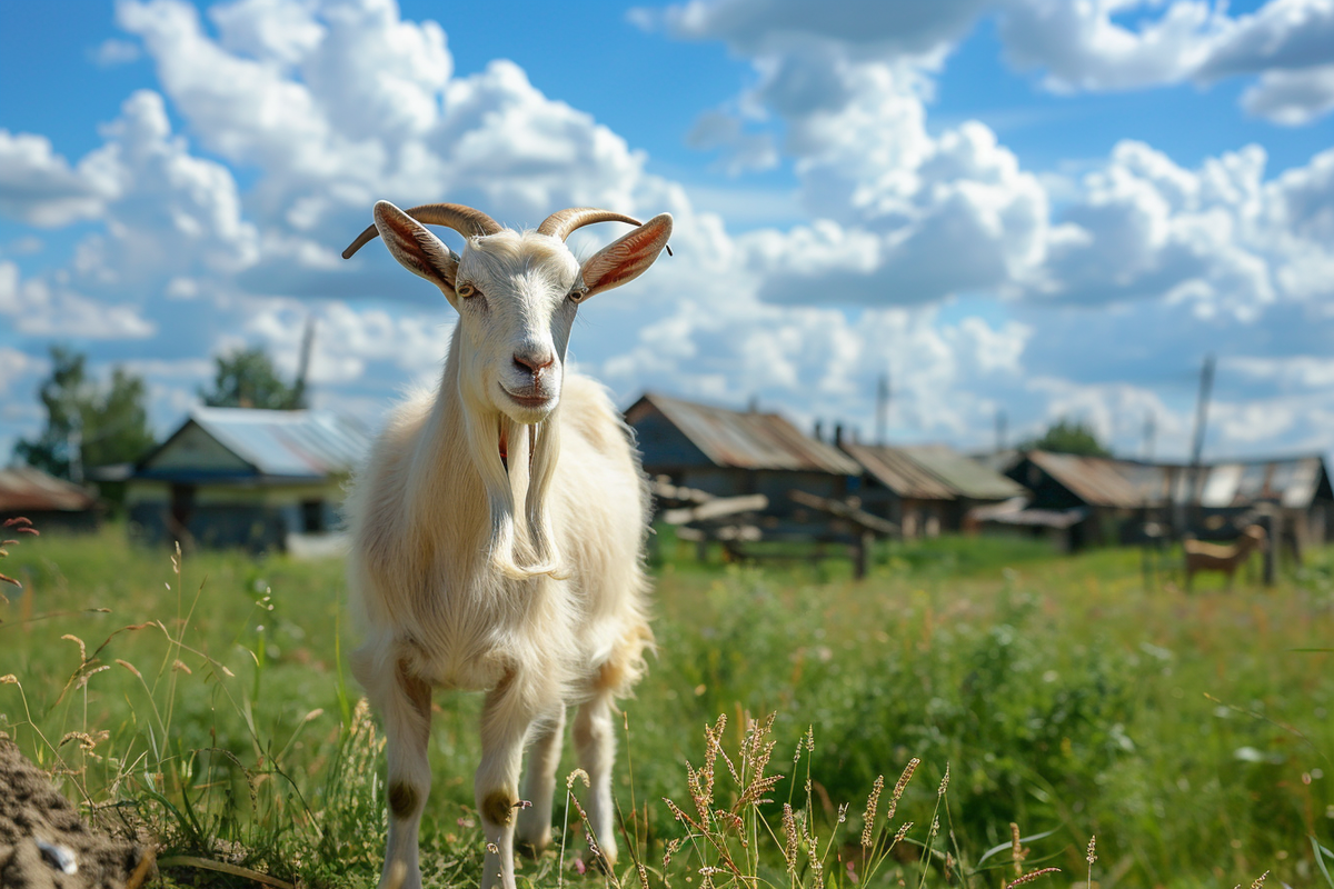 Неподалеку паслась коза - белая здоровенная зверюга. При виде людей она подняла голову и вдруг двинулась к ним.