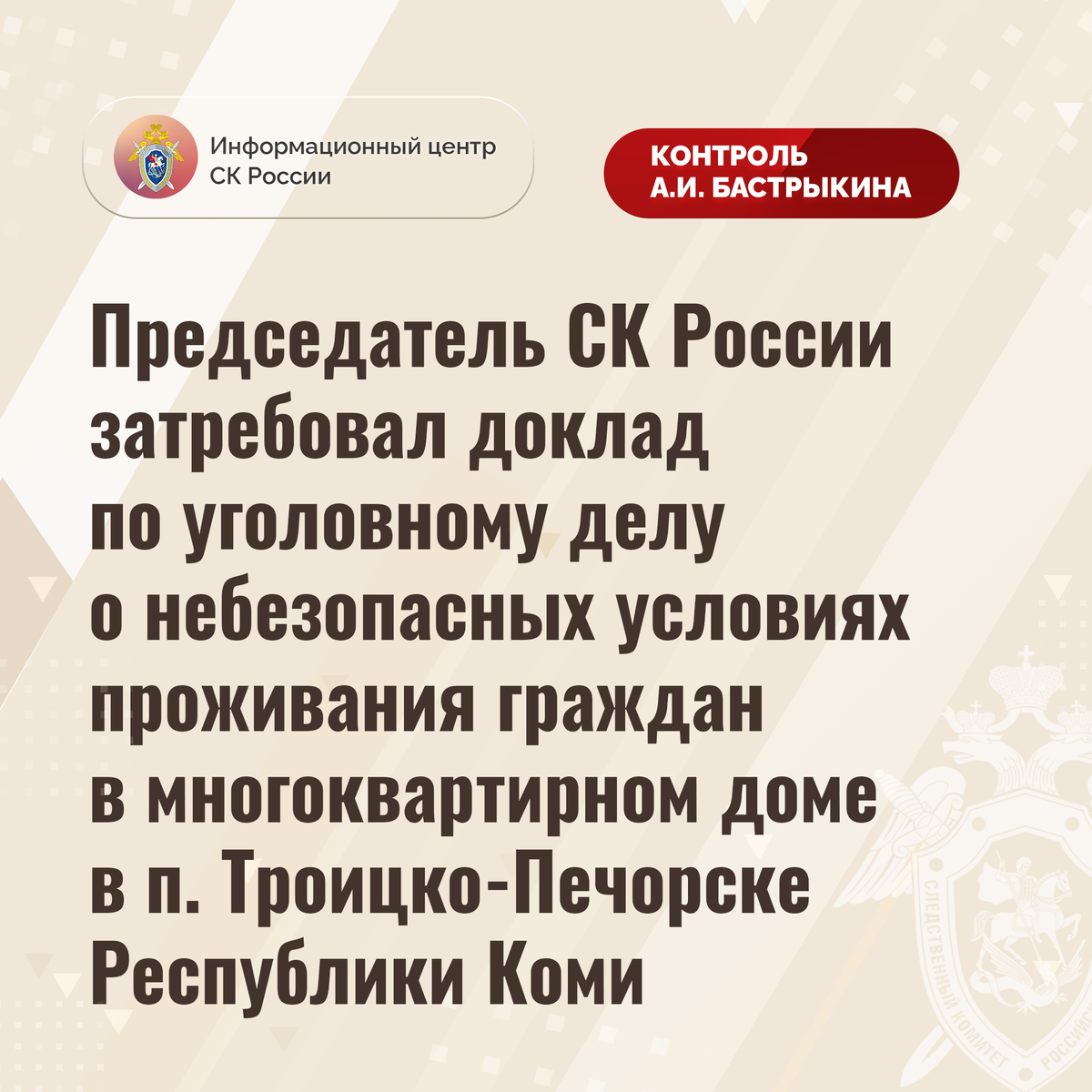 Председатель СК России затребовал доклад по уголовному делу о небезопасных условиях проживания граждан в многоквартирном доме в п. Троицко-Печорске Республики Коми