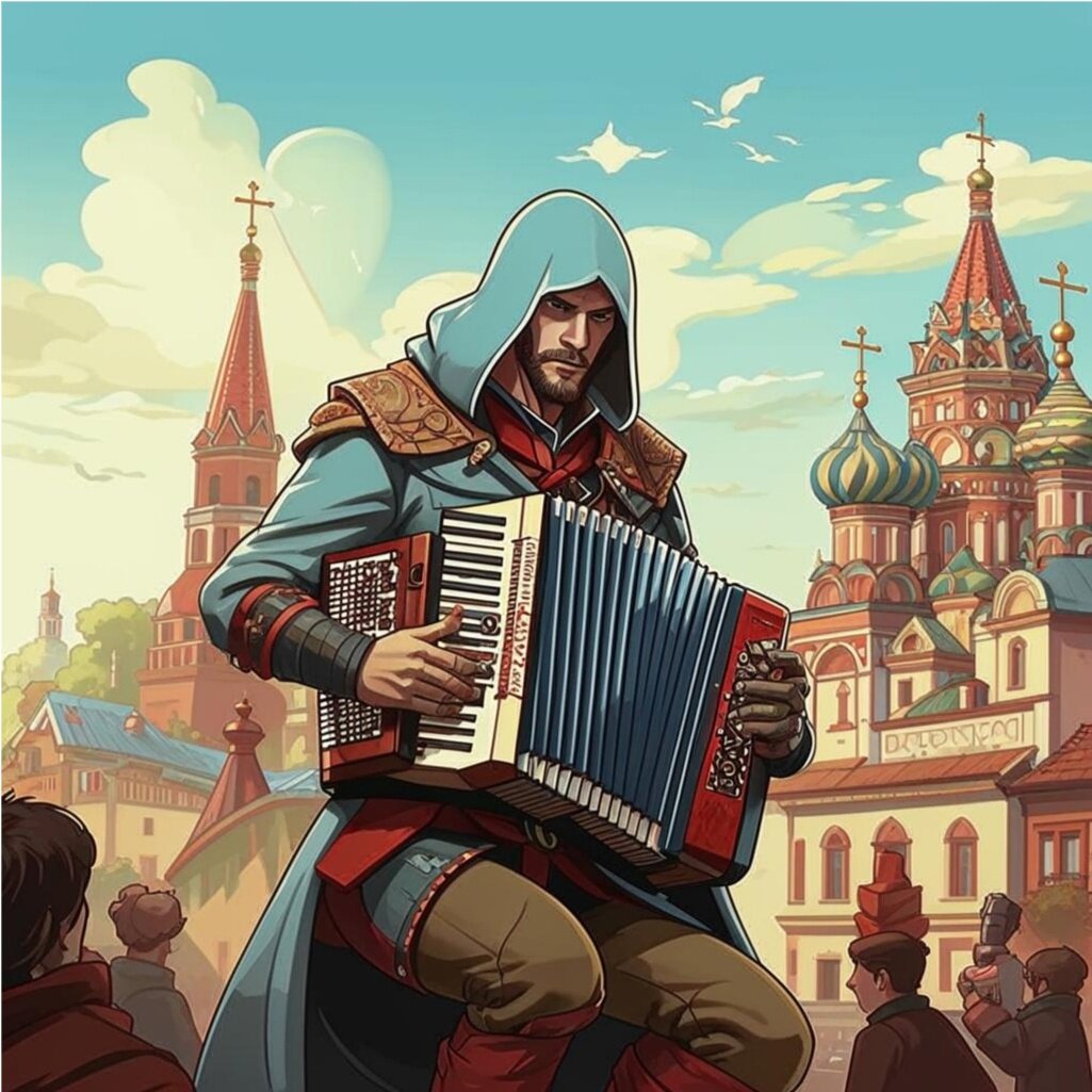 Бард пел старательно, играл голосом, как волчком, наводил мелизмами мистические интонации, вытягивал верхние ноты и честно отрабатывал свой уличный заработок. В центре города Тираса редко появлялся исполнитель, который умел одновременно недурно петь и аккомпанировать себе на гармони. Сейчас была ранняя весна и всё вокруг, включая сердца людей, было настроено на лучики тепла и триоли мехового музыкального инструмента мастера.
