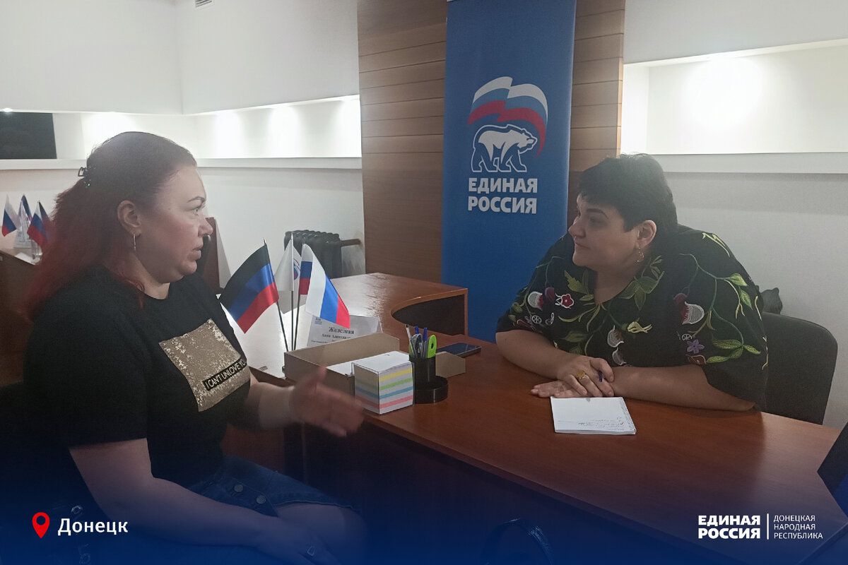 В региональной общественной приемной Единой России продолжается тематическая неделя приёмов граждан по вопросам охраны материнства и детства. Сегодня людей принимали депутат Народного Совета Донецкой Народной Республики, член Комитета Народного Совета по здравоохранению, охране материнства и детства Анна Железная и депутат НС ДНР, председатель комитета по физической культуре, спорту и туризму Владимир Чекун.