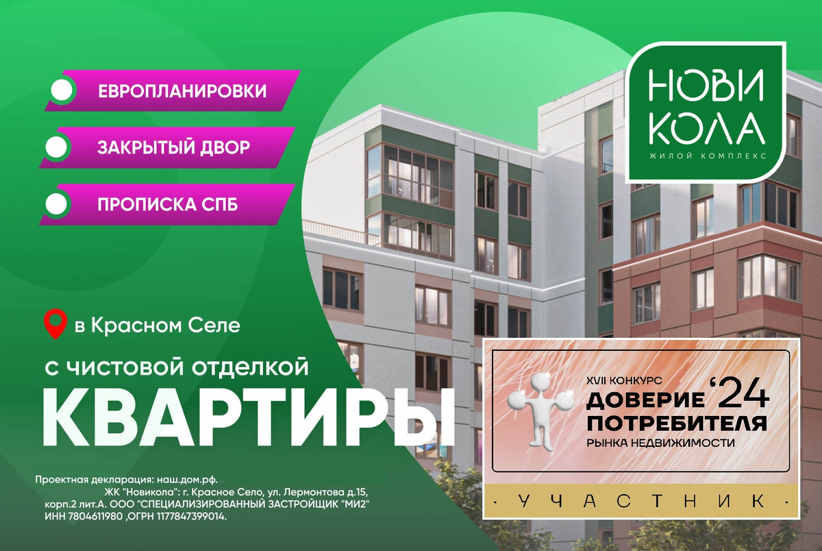Дорогие друзья! Рады сообщить, что ЖК "Новикола" от ГК "Технополис" - вошел в число участников престижного XVII Конкурса Доверие потребителя'2024 И примет участие в номинации ЛУЧШИЙ Строящийся Жилок комлпекс КОМФОРТ-КЛАССА в Санкт-Петербурге. Напомним, что требования к участникам - строгие и ЖК "Новикола" от ГК "Технополис" - полностью им соответствует: