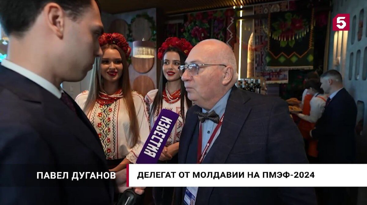 «Для Молдавии очень важно участие в ПМЭФ. Это не просто люди, которые дарят танцы, вино, а мы здесь, так как для нас очень важно дружить с Россией. Нас очень многое связывает: общие беды и победы, стремление к лучшему», - рассказал председатель делегации Павел Дуганов.