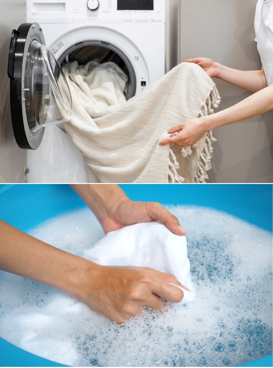 * Помните о правильности выбора режима стирки — он зависит от ткани конкретного текстиля и все тех же рекомендаций на ярлыке изделия (ну или если помните что за ткань). А ещё, в большинстве случаев (особенно в первую стирку), все-таки стоит отключать в стиральной машинке отжим — так ткань точно не повредится.