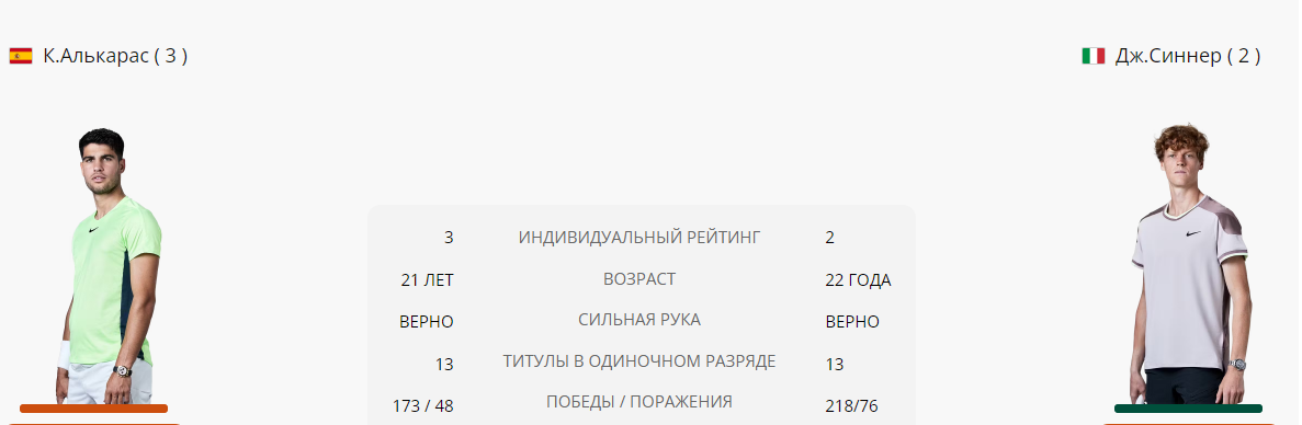 Соперничество между Алькарасом и Синнером началось несколько лет назад и продолжается до сих пор, принося фанатам захватывающие матчи и невероятные моменты. Их предстоящая встреча на Ролан Гаррос обещает стать одной из самых ярких в их карьерах.
