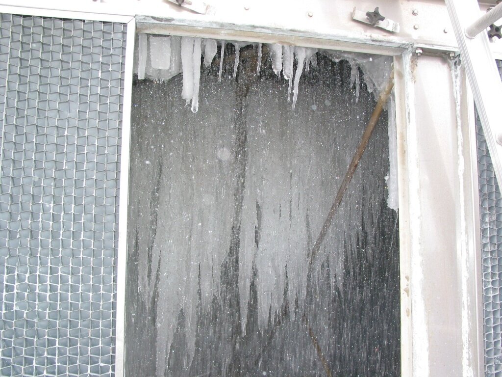 Когда условия окружающей среды приближаются к отрицательным значениям температуры, вода неизбежно превращается в лед. Градирни с открытым контуром циркуляции воды подвержены замерзанию из-за присущего им характера работы, испарительного охлаждения воды. В результате образование льда становится предметом интеллектуального управления работой устройства, а не простого удаления образовавшегося льда с компонентов оборудования.