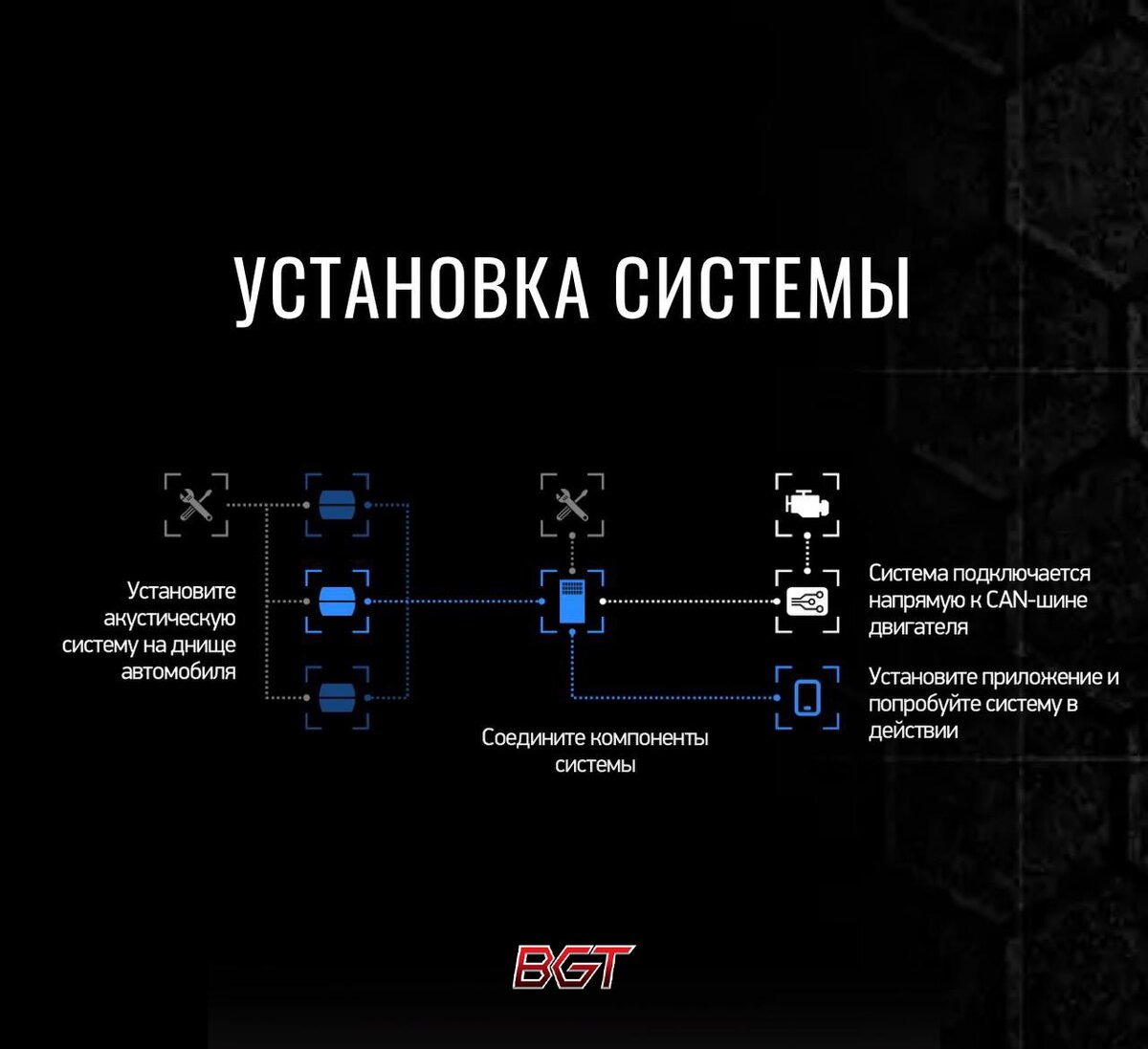 Новая система активного выхлопа, которую ставим на любой автомобиль где есть разъем OBD - это как бензиновые и дизельные автомобили, так и современные электрокары и гибриды. Установка системы активного выхлопа Система активного выхлопа устанавливается под днище автомобиля, ни как не мешает работе штатных систем, сами колонки и проводка к ним влагопыле защищенные по стандарту IP68. Множество тестов и время эксплуатации показали надежность системы, колонки живут долго без каких либо проблем. Комплектация активного выхлопа Существует три комплектации на 1, 2 и 3 динамика. Система бюджетная, но сами динамики имеют внушительную громкость, без потери четкости звучания. Звуки активного выхлопа Звуки записаны с оригинальных автомобилей, с использованием высококачественных записывающих устройств. В купе с хорошими динамиками дали не плохие результаты. Звук от системы чистый, без помех и белого шума. Звук не размазывается при активном нажатие на педаль газа. даже в режиме прострелов. Управл