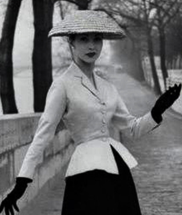 В этот раз решила обратиться к одной из моих любимых тем в моде — жакет-бар конца 40-х — начала 50-х годов ХХ столетия. Популярным этот жакет сделал Христиан Диор впервые представив публике свою дебютную коллекцию «Венчик цветка» 12 февраля 1947 года. Этот показ стал отправной точкой стиля New Look от Dior. История гласит, что стиль New Look и собственно сам показ 1947 года произвели эффект разорвавшейся бомбы. Шумиха поднялась небывалая. Стиль, вначале, не был принят, так как на фоне аскетизма военного времени, пышные юбки ниже колена, корсеты, приталенный силуэт, туфли на каблуке от Dior были восприняты как неудобный, непрактичный и крайне расточительный возврат к моде начала ХХ столетия. Но… Довольно быстро мир был покорён женственностью стиля New Look и на ближайшее десятилетие он стал ведущим стилем, безошибочно выделяющим силуэты конца 40-х — середины 50-х годов в мире моды. Жакет-бар является одной из главных составляющих стиля New Look и… он прекрасен! Смотрите и судите