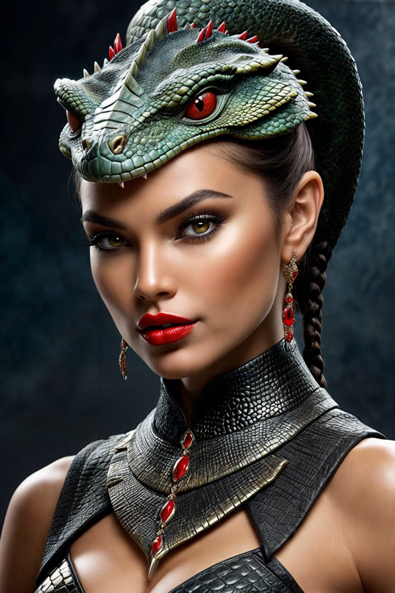 Технологии стремительно меняют наше восприятие искусства, и нейросети становятся мощным инструментом для художественной самореализации. Друзья, сегодня вас ждут удивительные нейроарты, на которых изображены воины-рептилии, поражающие своей неземной красотой. Все эти изображения созданы мною в бесплатной нейросети Playgroundai. Промт: Освещение, тщательно подобранное для подчеркивания ее рептильных черт, излучает мягкое сияние, подчеркивающее глубину и текстуру ее чешуи. Один источник света, стратегически расположенный, создает интригующие блики и тени, добавляя композиции глубину и объем. Эта преднамеренная игра света и тени еще больше подчеркивает ее рептильную привлекательность, привлекая внимание к ее очаровательному присутствию. Каждый мазок и мельчайшие детали способствуют реализму и правдоподобности этого произведения искусства. Текстуры ее кожи рептилии, замысловатые узоры ее чешуи и тонкие вариации цвета — все это прорисовано безупречно, что создает захватывающий и захватываю