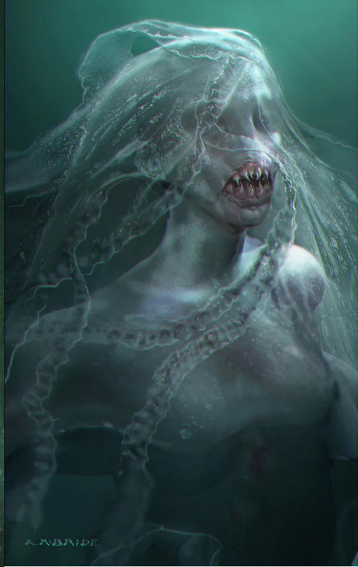 Лиза запрокинула голову и издевательски захохотала грубым нечеловеческим голосом. Ее тело снова начало меняться. Тело покрылось зеленой чешуей, между пальцами рук выросли перепонки. Ноги обволокла белая студенистая масса, превращая их в рыбий хвост.