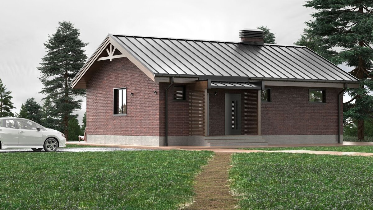 Стильный одноэтажный дом с двускатной крышей, 110 кв. м