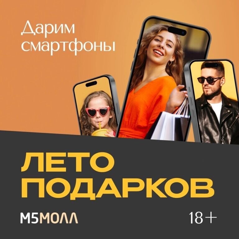 Лето в «М5 Молл» — это не просто жаркое время года, это возможность провести время с удовольствием и пользой. Именно сейчас в ТРЦ проходит акция «Лето подарков». Главные призы — три iPhone 15. У каждого участника летней акции «М5 Молл» есть шанс выиграть предмет своих мечтаний. Для этого нужно совершить всего три действия: •купить товары в магазинах ТРЦ «М5 Молл» на сумму более 5000 рублей; •зарегистрировать чек на стойке информации, заполнив анкету участника; •получить купон и опустить его в барабан на стойке информации. Три участника «Лета подарков» унесут с собой iPhone 15. Итоги «Лета подарков» будут подведены 31 августа в 14:30. Подробности об условиях акции можно узнать по ссылке. Более подробно о мероприятиях и событиях «М5 Молл» можно узнать на официальных страничках ТРЦ в социальных сетях: «ВКонтакте» и Telegram. Реклама: Филиал Компании с ограниченной ответственностью «РЯЗАНЬ ШОППИНГ МОЛЛ ЛИМИТЕД», ИНН: 9909235800 erid: 2VtzqviSmT4