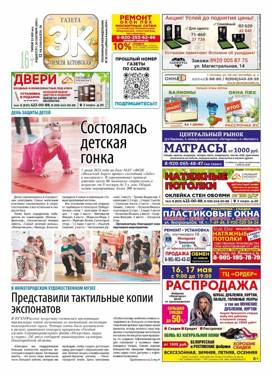 Газета "ЗЕМЛЯ КСТОВСКАЯ"№ 20 (1016) от 08.06.2024г