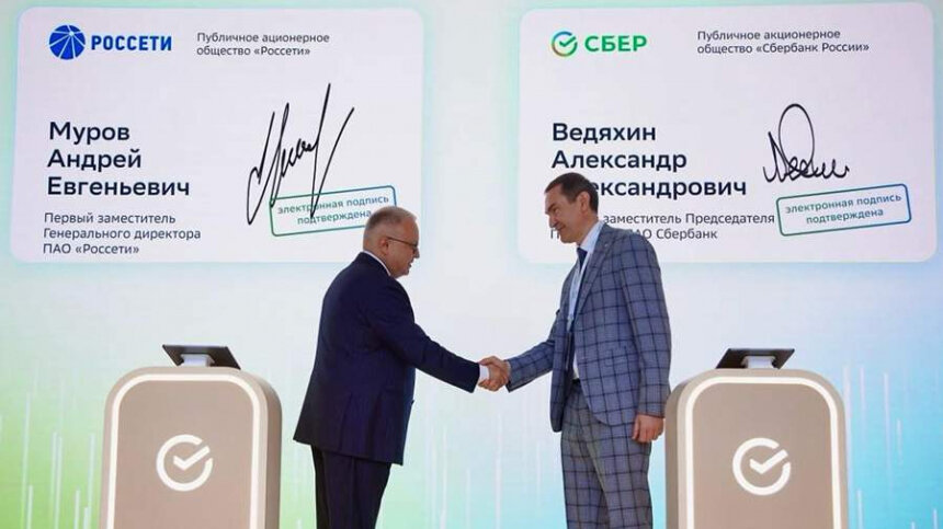 Договор между сторонами был подписан на полях ПМЭФ-2024. Фото: ПАО «Россети» Группа «Россети» и Сбер заключили соглашение о разработке новых и применении лучших существующих отраслевых AI-решений для цифровой трансформации электросетевого комплекса. Договор в ходе ПМЭФ-2024 подписали первый заместитель генерального директора ПАО «Россети» Андрей Муров и первый заместитель председателя правления ПАО «Сбербанк» Александр Ведяхин. «Сегодня Россия занимает передовые позиции в мире по темпам цифровой трансформации ряда стратегических направлений, в том числе с применением AI-технологий. Президент России поставил задачу до 2030 года перевести всю экономику, социальную сферу на качественно новые принципы работы, внедрить управление на основе данных. Этому может способствовать кооперация между ключевыми субъектами рынка, примером которой является подписанное сегодня соглашение. Бенефициарами станут в первую очередь потребители Группы „Россети“, а это — подавляющая часть предприятий и населения