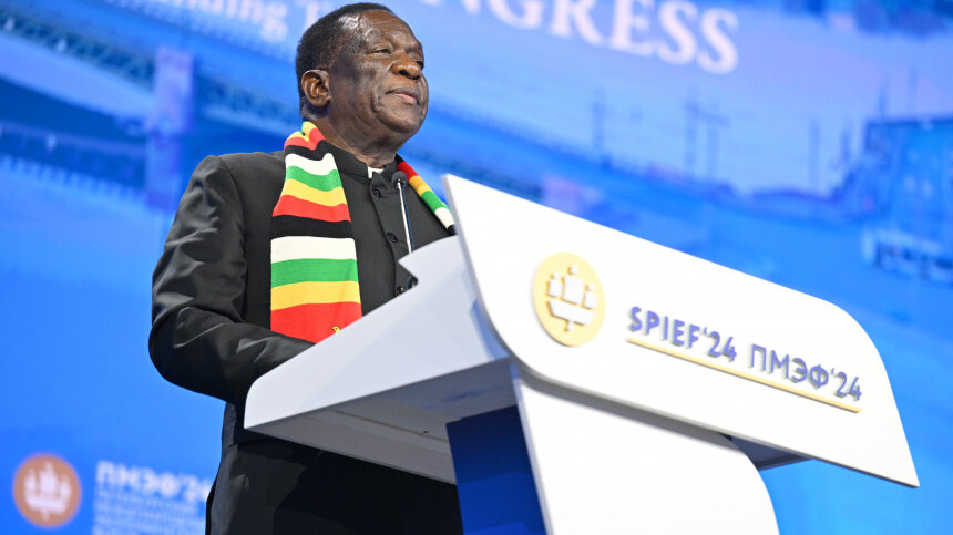 Об этом заявил глава республики Эммерсон Мнангагва на ПМЭФ-2024. Фото: © РИА Новости / Иван Секретарев «Преступления» Зимбабве, из-за которых страна много лет находится под западными санкциями, заключаются в желании вернуть собственные земли. Об этом заявил глава республики Эммерсон Мнангагва на пленарном заседании XXVII Петербургского международного экономического форума. Он подчеркнул, что давление некоторых стран оказывает неблагоприятное влияние на экономику Зимбабве и, по сути, тормозит ее развитие. Мнангагва также добавил, что в мире необходимо возникновение центров экономического развития и перераспределение власти между государствами. В Северной столице проходит XXVII Петербургский международный экономический форум. Участие в нем принимают более 17 тысяч представителей из 136 стран мира. В этом году основной темой ПМЭФ стала «Основа многополярного мира — формирование новых точек роста». Спикеры и эксперты обсуждают, в том числе, ключевые тенденции и перспективы развития российс