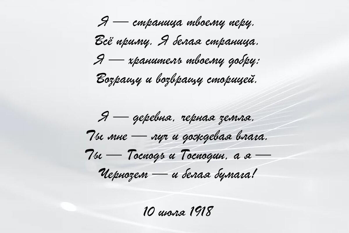 Кто из женщин не испытывал страсти и преклонения перед возлюбленным? Марина Цветаева, одна из самых выдающихся поэтесс, мастерски передала эти чувства в своем стихотворении "Я – страница твоему перу". Но кажется, что это произведение таит в себе большую загадку. Давайте разбираться.