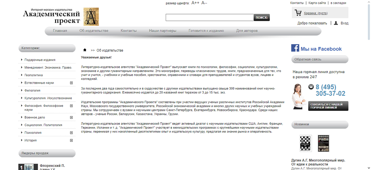 Информацию об издательстве "Академический проект" можно посмотреть на сайте https://academ-pro.ru/index.php?