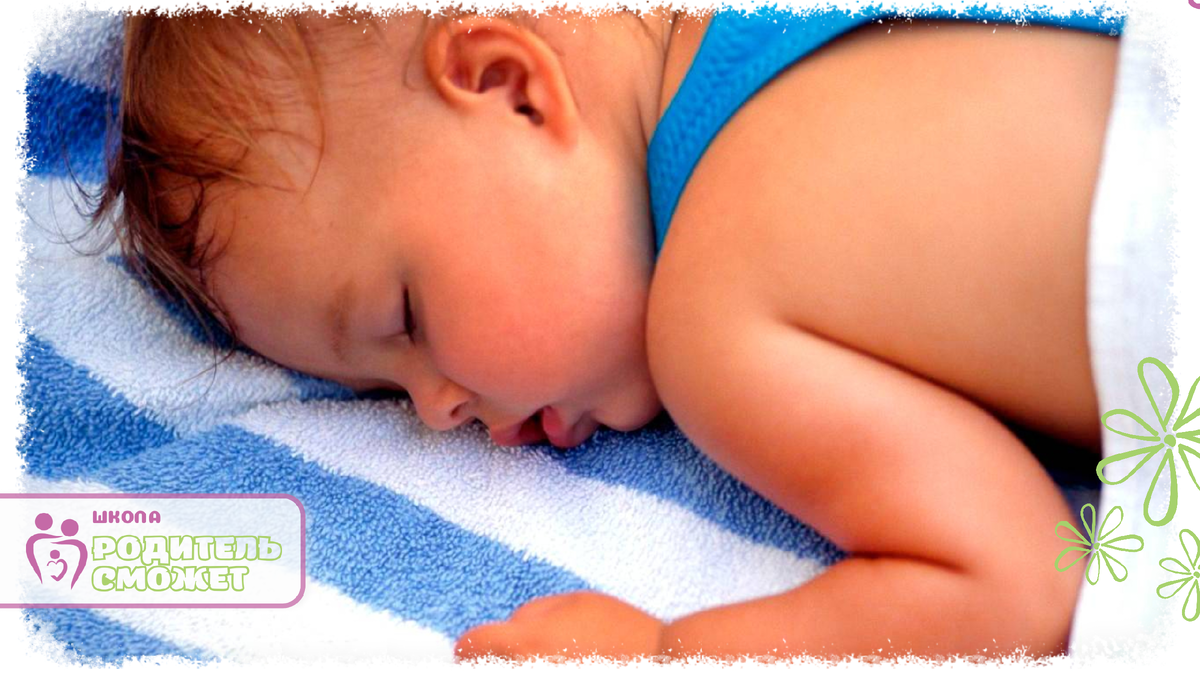 Обтираем лицо, волосистую часть головы, грудь, живот, руки до локтей, внутреннюю часть бёдер хорошо мокрым полотенцем и даём влаге испариться с кожи ребёнка: