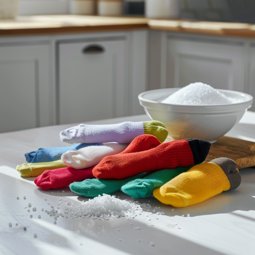 - Обсыпаем солью: Щедро обсыпаем носочки солевой пылью.
