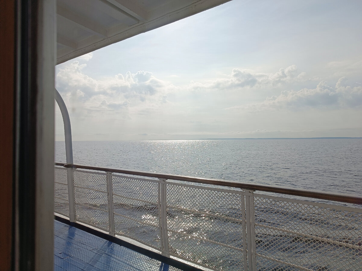 Традиционная зарисовка вида из окна при пробуждении: Волга в некоторых местах бывает настолько широкой, что создаётся впечатление нахождения на морском лайнере, а не на речном теплоходе. А вчера для полноты картины прошли и Жигулевские горы: А как вообще начинается утро на корабле? Помимо сменяющих друг друга пейзажей некоторые вещи остаются неизменными. Это и начало работы радиорубки с замечательной подборкой музыки и рассказов о местных достопримечательностях. Это и работа матросов, как пчёлки бегающих с рассветом и наводящих порядок. Очень активные ребята: Туристы-активисты после будильника бегут на зарядку. А затем в ожидании завтрака прогуливаются по палубам. Для желающих взбодриться на главной палубе работает мобильная кофейня, где можно выпить чашечку чая или кофе. Бесплатно))) Я пришла за чаем, хотя легко могла бы дотерпеть до завтрака. Пока ожидала своей очереди, полюбовалась на интересный мини-музей - уникальную инсталляцию, которая есть только на "Александре Невском". Это