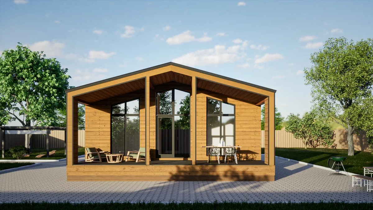 Компактный вариант дома в стиле барнхаус включает в себя: