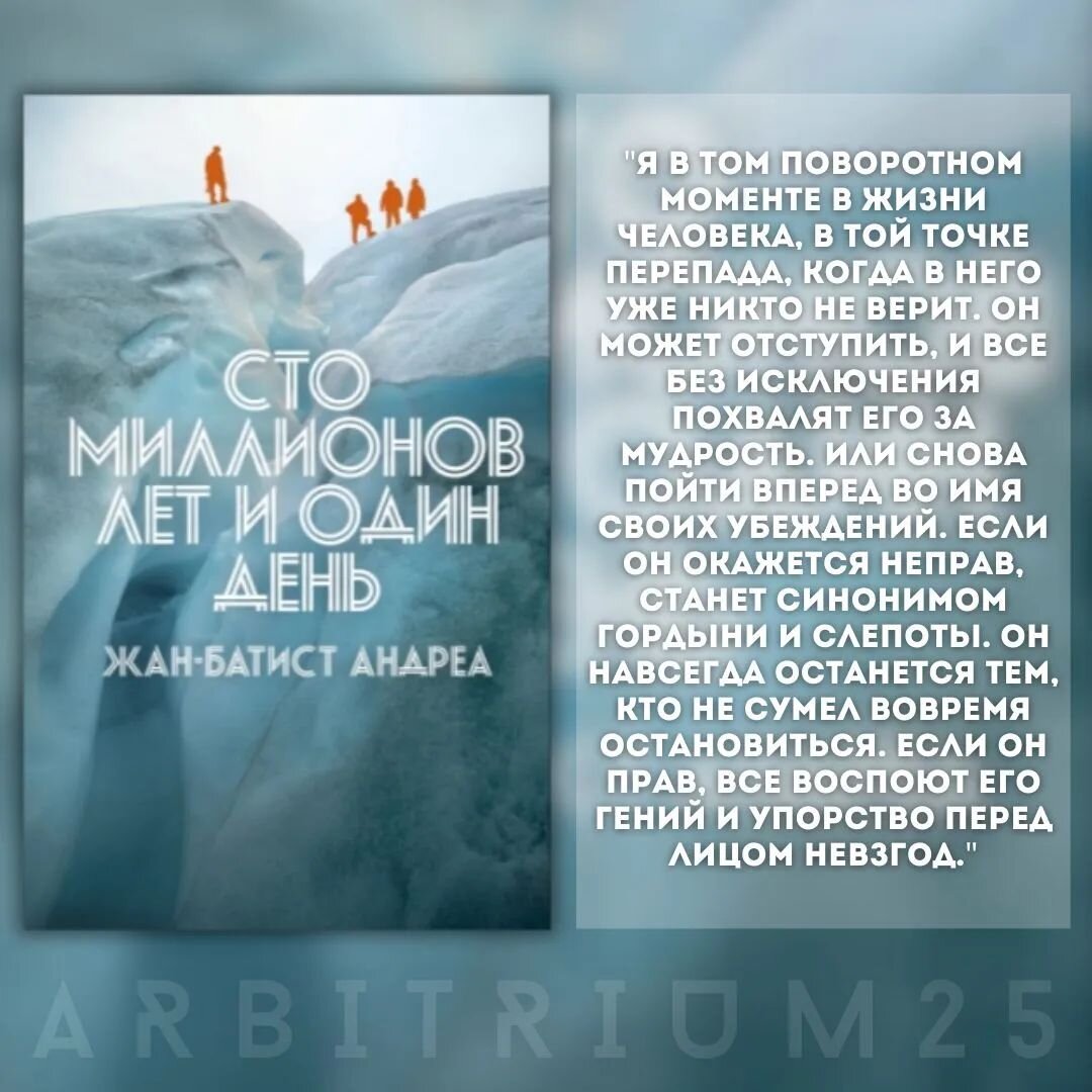 Цитата из книги Жан-Батиста Андреа "Сто миллионов лет и один день" глубоко касается внутреннего конфликта, который человек испытывает на поворотных моментах жизни. Автор передает сложность выбора, когда на карте — сомнения и недооценка окружающих. Безопасное отступление может принести похвалу за мудрость, но решение идти вперед вопреки сомнениям — это риск быть обвиненным в высокомерии и слепой упорности при неудаче. Цитата подчеркивает значение личных убеждений и готовности принять решительные шаги, несмотря на общественное мнение. Она показывает, что истинный гений истории обычно рождается на грани между поражением и триумфом, когда человек решает идти против течения ради своих убеждений. Но как бы ни было, не забывайте, что самый важный шаг на пути к успеху — это решимость продолжать двигаться вперед, даже если все вокруг кажется трудным. Не останавливайтесь на полпути, верьте в себя и свои возможности, и вы достигнете цели.