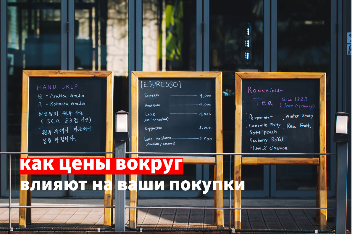 Если вы читали мою заметку про оценку адекватности цены, то помните, что одним из критериев восприятия нормальности цены были цены на продукты рядом. То есть смотря на цену на багет, вы понимаете, что цена на ржаной хлеб скорее всего адекватна. Так вот вернемся к теме привлекательности цены. Есть интересное исследование в котором авторы провели следующий эксперимент: На одной из набережных были расположены шатры, в которых продавали товары для туристов. В одном из шатров продавались музыкальные диски, а во втором сувенирная одежда. В определенный момент продавец в шатре с одеждой менял цену на толстовку с 10 до 80 долларов. В это время продажи дисков увеличивались – потому что цены на них казались дешевле. Как можете исследовать эту особенность восприятия цен вы? 1) Дайте вашим клиентам сравнить ваши цены с любыми другими. И не обязательно в сравнении должны принимать участие товары из одной категории. Цена на то, что хотите продать, должна быть выгоднее цен вокруг. 2) Если повлиять