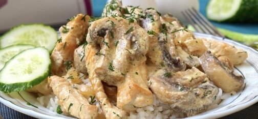 Индейка с грибами в сливочном соусе - замечательное домашнее блюдо, которое будет отлично сочетаться с любым гарниром.