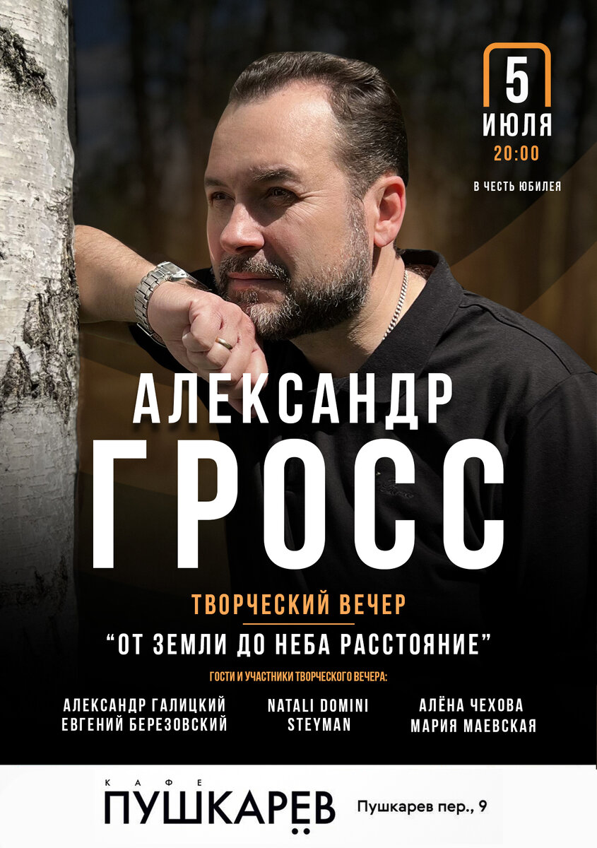5 июля в арт-кафе “Пушкарев” состоится творческий вечер Александра Гросса “От земли до неба расстояние”