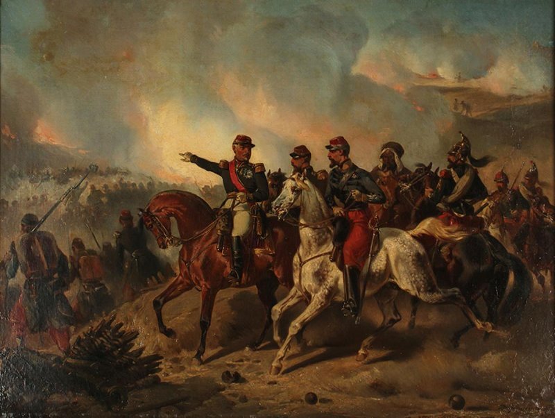 В Севастопольском художественном музее имени М.П.Крошицкого хранится картина, подписанная как «Батальный сюжет из франко-прусской войны» и приписанная авторству некоего Жанжамбра. Я попытался поискать информацию о таком живописце, но нашел только английскую художницу французского происхождения Софи Жанжамбр Андерсон, «специализировавшуюся в жанре портрета женщин и детей, преимущественно в окружении сельской местности». Видимо, в данном случае имеется в виду не она Авторы аннотации к картине в музейных описях вполне верно определили, что на полотне изображены ведущие бой французские войска периода Второй империи. И тем не менее данное ими картине название крайне удивляет. Особенно оно удивительно именно для сотрудников того музея, где картина хранится. Дело в том, что в центральной фигуре военачальника, перстом указующего направление движения подчиненных ему войск, узнается дивизионный генерал Пьер Франсуа Жозеф Боске – один из самых популярных (или даже самый) французских командиров пе