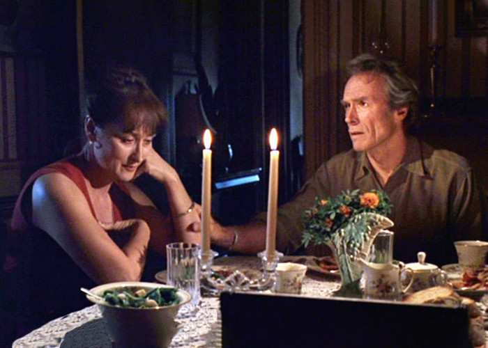 В этом фильме классическая музыка звучит всего две минуты, фоном из радиоприемника на кухне. «Casta Diva», которую переключает на что-то более веселое дочь героини, а потом ария Далилы «Mon cœur s’ouvre à ta voix». И тем не менее эти две случайные арии немало сообщают и о самой героине Франческе, и о том, какие повороты ей готовит судьба. Штат Айова, 60-е годы. Итальянка Франческа в исполнении Мэрил Стрип вышла замуж за американского фермера и родила ему двух детей. Вокруг бесконечные поля среднего Запада и такая же бесконечная и предсказуемая тоска. Но делать нечего, полжизни уже прошло, и в том, что так получилось, никто, конечно, не виноват. И тем не менее, когда однажды муж и дети уезжают на ярмарку в другой штат — продавать бычка — она чувствует необычайное облегчение. «Я понимаю, это звучит ужасно. Но я не могла дождаться, когда вы уедете», — напишет она в своем дневнике. В момент ожидания отъезда как раз и звучит по радио «Casta Diva» в исполнении Каллас. А через полчаса около д