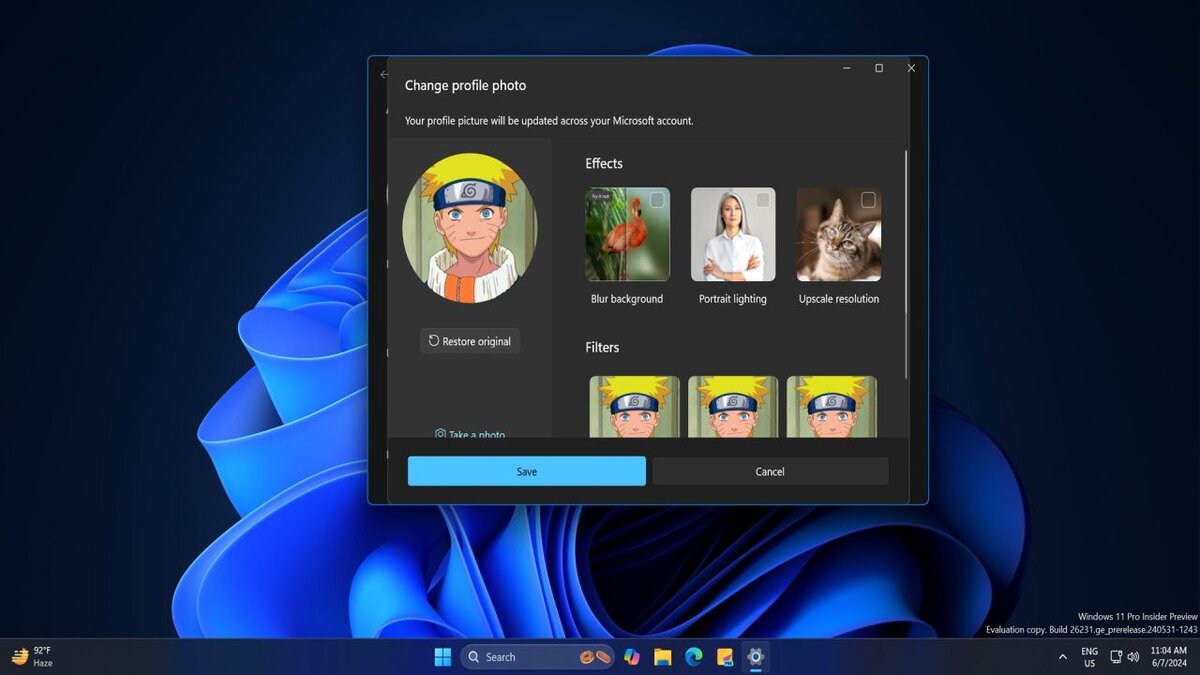 Microsoft тестирует новую ИИ-функцию для менеджера изображений профиля в Windows 11