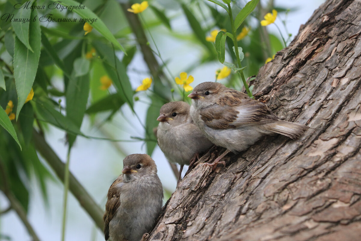 Вчера я случайно нашла выводок домовых воробьёв. Это было в очень оживлённом месте, где постоянно ходят люди. Я спряталась за деревом и принялась наблюдать за малышами: к ним периодически подлетала самка и чем-то кормила, вызывая у всех птенцов бешеный ажиотаж. Малыши практически по головам друг у друга ходили, лишь бы заполучить еду. А потом смотрю — у самки в клюве булка! Да-да, тот самый пшеничный батон, которым обычно кормят зимой водоплавь, вместо того, чтобы купить самый дешёвый и более полезный для птиц геркулес. Оказалось, что совсем рядом кто-то решил покормить булкой озёрных чаек. Воробьиха не растерялась и начала подбирать куски, которые и носила птенцам. За этот хлеб слётки сражались как в последний раз. А я стояла и пыталась понять, зачем же люди оказывают птицам медвежью услугу. Это что за бестолковые развлечения такие? Воробьи выкармливают птенцов насекомыми. А когда выводок выходит из гнезда, слётки могут есть всё подряд, что им принесут. В начале июня в Петербурге изо