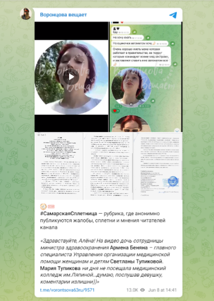 В телеграм-канале "Воронцова вещает", в рубрике #СамарскаяСплетница, я опубликовала анонимное недовольство: