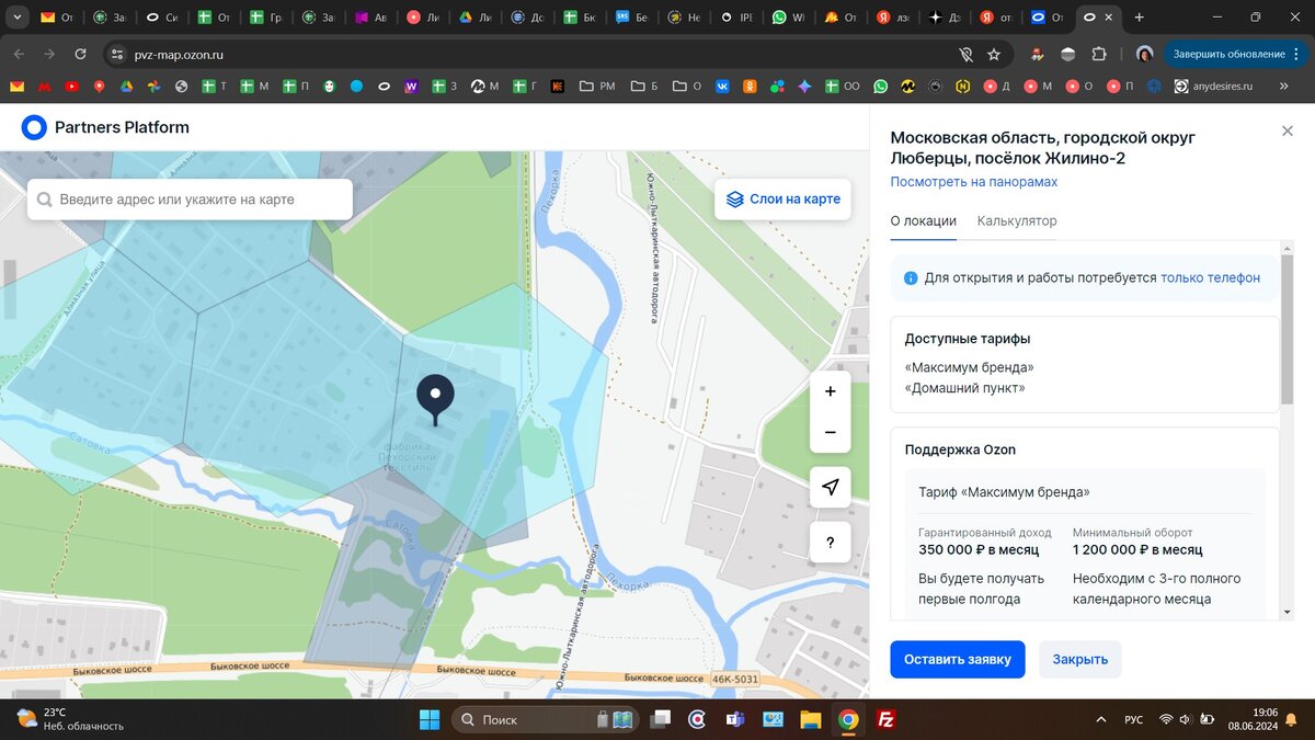 Первое и самое тяжелое это найти помещение. Локацию где можно открыть можно посмотреть либо в приложении озон пвз, предварительно зарегистрировавшись как юридическое лицо, что усложняет для обычных людей задачу, тоесть нужно иметь ИП либо по карте на сайте https://pvz-map.ozon.ru/ На карте желательно найти место с поддержкой обозначены синими гексагонами, будут выплачивать гарантированный доход при достижении оборота, однако при закрытии ранее чем 9 месяцев всю поддержку нужно будет вернуть. Например, как мы видим на скрине тут будут выплачивать 350 000 рублей в месяц. Также при открытии дарят 50000 рублей, однако их тоже нужно будет вернуть если закроете раньше 9 месяцев с первой выдачи. Требование к помещению от 25 м² или от 30 м² — в Москве внутри ЦКАД. Рядом с объектами, формирующими трафик: жилыми домами, сетевыми магазинами, детскими садами, торговыми и бизнес-центрами и косметический ремонт Выбрали локацию и по нужному адресу оставили заявку в приложении озон пвз, вам подтвер
