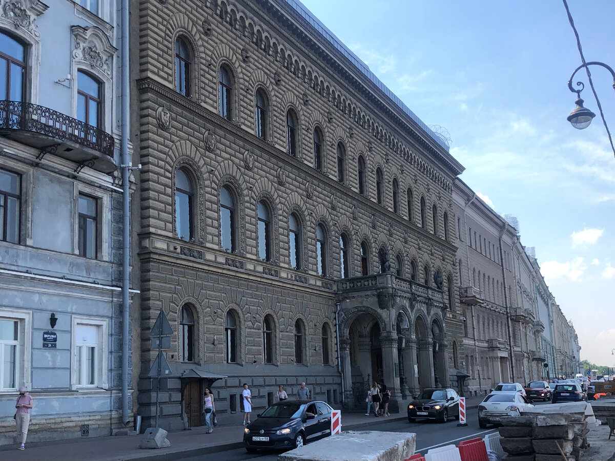 Но вернёмся к дворцу. Его фасад строг и довольно прост, он выполнен в стиле венецианского палаццо. К сожалению ремонт набережной не позволил сделать фото с хорошего ракурса.