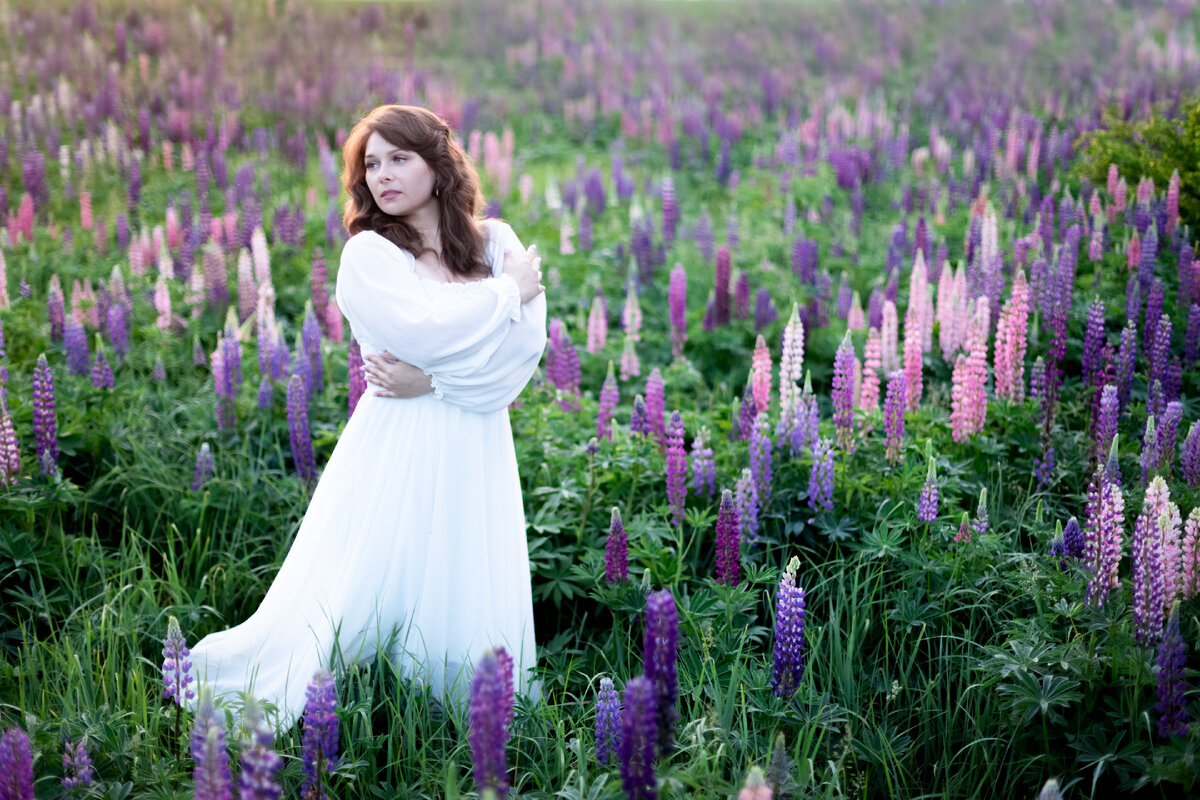 Недавно выезжали на рассвете, что бы сделать красивые кадры в люпинах.