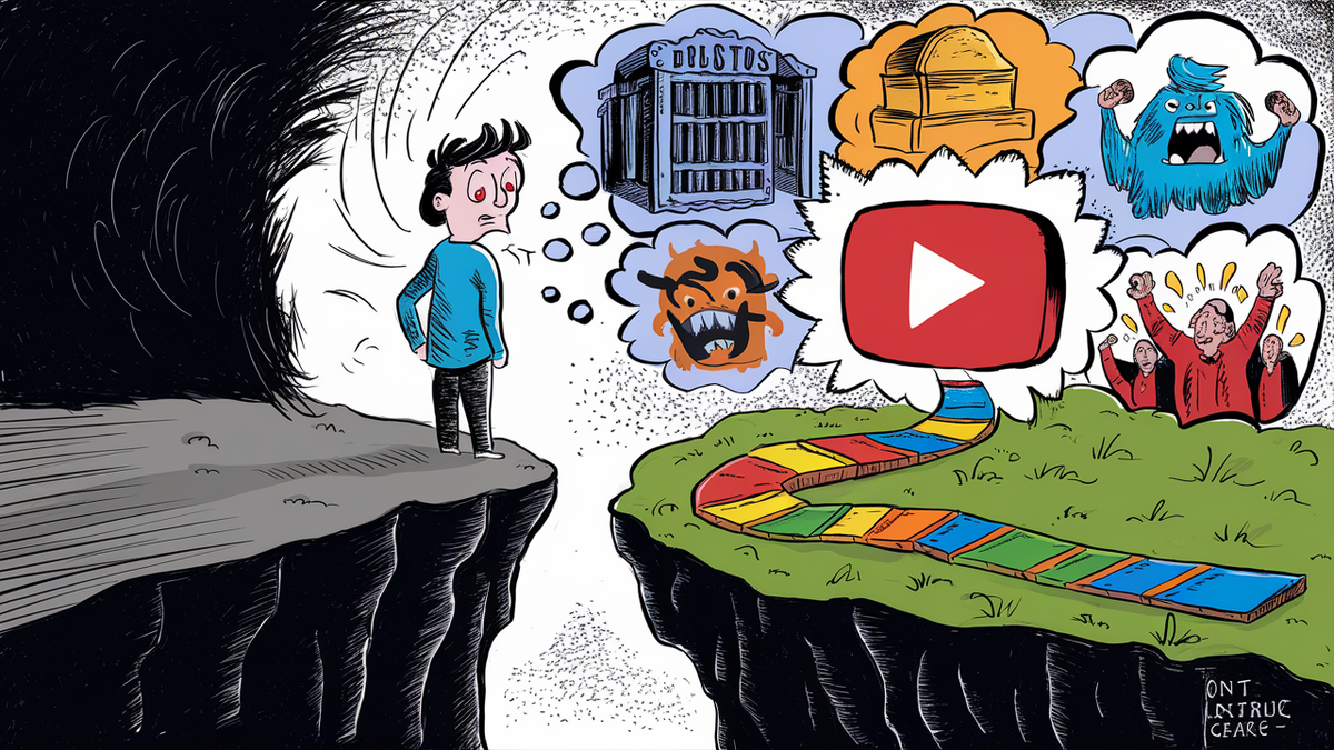 Представь, что твоя мечта о YouTube-канале кажется тебе прыжком в глубокую тёмную пропасть. Ты стоишь на краю обрыва, внизу непроглядная тьма. И ты не знаешь, что там, на дне: острые камни или ледяная вода. Твоё сердце колотится от страха, ноги дрожат и подкашиваются. Каждая клеточка твоего тела кричит: «Не прыгай! Это опасно! Ты разобьешься!»