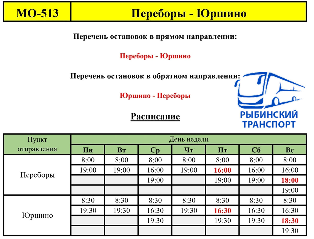 На летний период вводится дополнительный рейс 18:00/18:30 (Пт. Вс.) по маршруту "Переборы - Юршино"