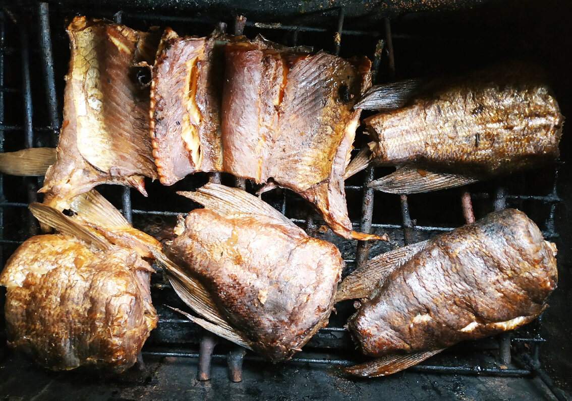 Я часто на даче копчу рыбу на костре. Копченая рыба получается очень вкусная. Ее можно есть прямо так, еще теплую сразу из коптильни. А можно испечь пирог или сделать салат. Но сначала пара слов о коптильне. Покупать коптильню из обычного металла не стоит. Ее хватит только на один сезон. Потом дно у нее прогорит. Более долговечные коптильни из нержавеющей стали. При этом толщина металла должна быть не менее 1 мм. А еще очень полезно на костер под коптильню устанавливать лист металла. В этом случае коптильня прослужит вам не один год. А теперь переходим непосредственно к копчению. Отбираем из пойманной рыбы крупные экземпляры, которые планируем пустить на копчение. Потрошим их. Чистить чешую не надо. А вот жабры надо убрать, если оставляем головы. Чаще головы я оставляю. Но если планируется еще и варить уху, то головы отрезаем и отправляем в уху для лучшего навара. Затем рыбу следует вымыть. Чистую рыбу солим, пересыпая крупной солью снаружи и немного присаливаем в