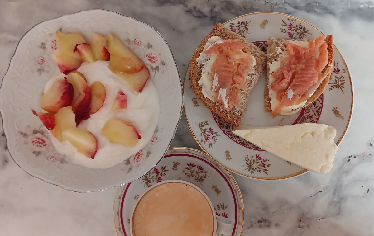О моих запасах продуктов и бюджете на питание в июне можно почитать ЗДЕСЬ Каталог рецептов Покупка продуктов №1 -Магнит, Озон, Вкусвилл, Мегамаркет, Дикси Покупка продуктов №2 - Магнит, Черкизовский МК, Мегамаркет, Смарт, Вкусвилл, рынок Завтрак сегодня у нас разный. У половины семьи - гречка с молоком, у второй половины - мягкий творог с фруктами. У меня творог с персиками. Также бутерброды с горбушей, домашний сыр и кофе. У остальных еще бутерброды с белебеевским сыром. С утра сразу достала размораживаться колбаски домашние и куриную грудку. Хорошо, когда меню запланировано. Чуть ли не с закрытыми глазами достаешь из морозилки и спокойно готовишь. Я давно уже забыла, что такое муки выбора возле морозилки 😊 Я готовлю то, что семья любит и ест. Либо дифференцирую блюда - кому что, например, два гарнира может быть разных. Или два разных горячих. Но это редко. Чаще просто использую в меню блюда, которые ест вся семья. На обед бульон куриный, курники и пиццы. С грудки срезала филе,