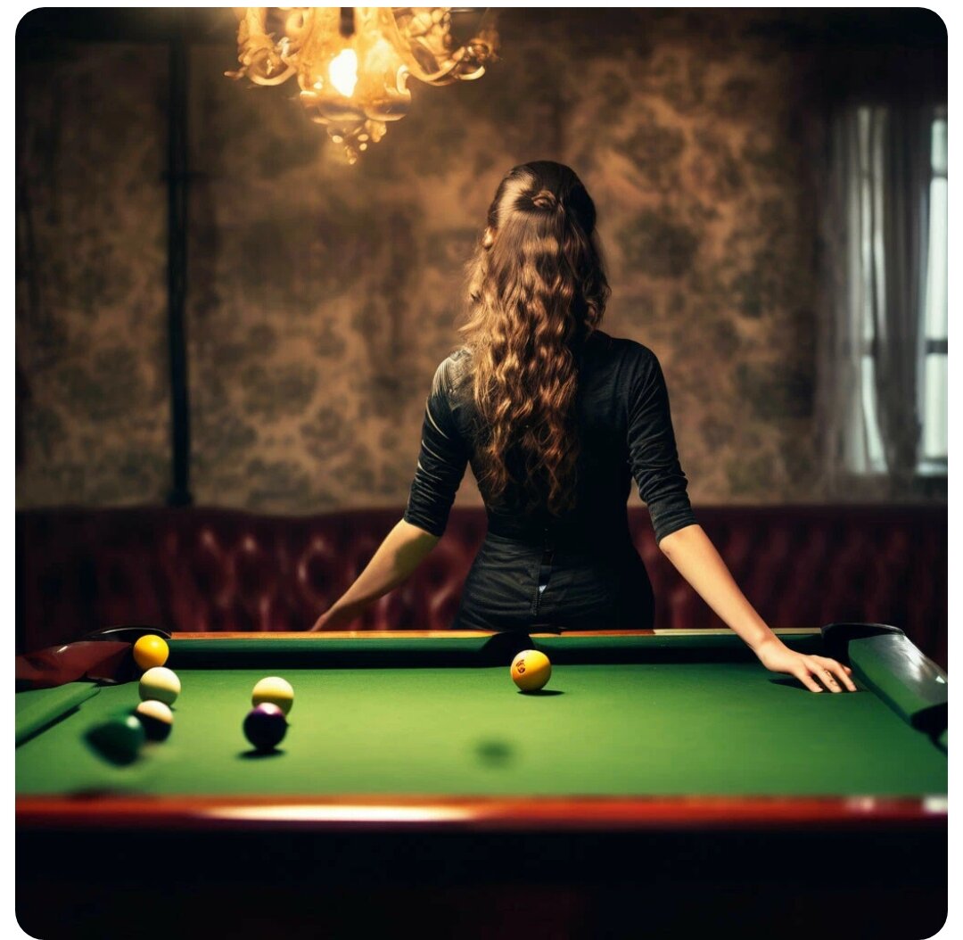Вечером, прилично одевшись и нанеся макияж, девушка пришла в бильярдную как гость и оплатила аренду стола. Она катала шары в одиночестве и молилась о том чтобы пришёл человек, который захочет составить ей компанию. И ещё раз девушке повезло - один из постоянных гостей бильярдный решил поучить малолетку игре, при этом был настолько уверен в своих силах что предложил играть на деньги.