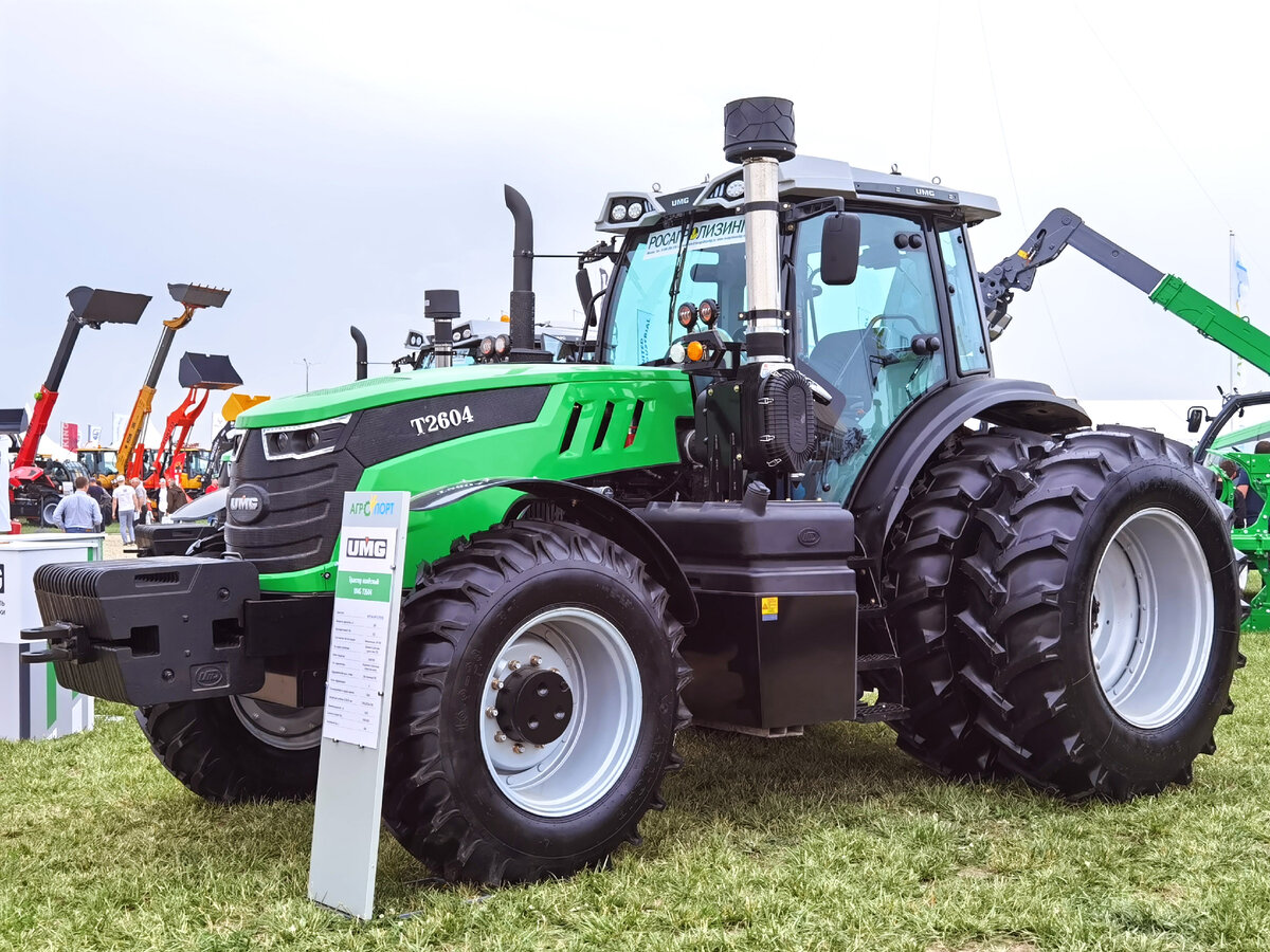 На выставке «Золота Нива 2024» российская компания UMG впервые представила широкой публике новую линейку классических тракторов Т-серии мощностью от 90 до 260 л/с. Кроме этого, на стенде компании состоялась премьера нового шарнирно-сочлененного трактора ТА-340 мощностью 340 л/с и были продемонстрированы первые единицы прицепной техники в фирменном зеленом цвете: оборотный 4-х корпусной плуг UMG PL450 и Х-образная дисковая борона UMG HD 4,8 м. с дисками 460 мм. Судя по каталогу техники на сайте компании в ближайшее время UMG будут готовы предложить аграриям плуги серии PL в вариантах до 8 корпусов, дисковые бороны HD с захватом до 7,2 м, а также глубокорыхлители, фрезы и посевную технику. Дополнили экспозицию UMG на выставке телескопический погрузчик TLH-3507AG и еще одна премьера компании – прототип трактора UMG ТА-250 мощностью 250 л/с.