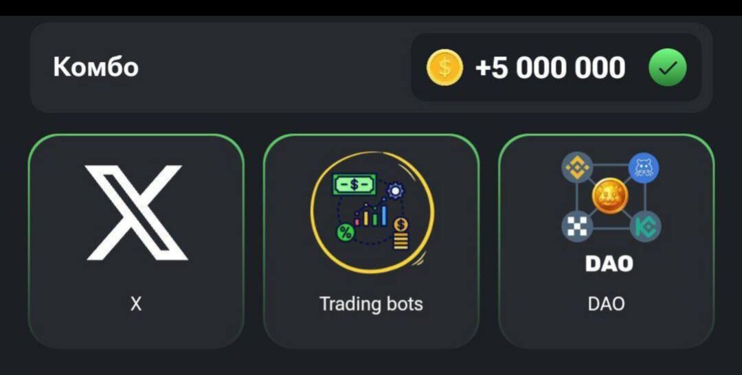 Заходим, прокачиваем ➡️Hamster Kombat🐹 (если не выгодно, то можно не прокачивать) - X - вкладка PR&Team - Trading bots - вкладка Markets - DAO - вкладка Matkets Нужно прокачать вот эти карточки и +5М монет.
