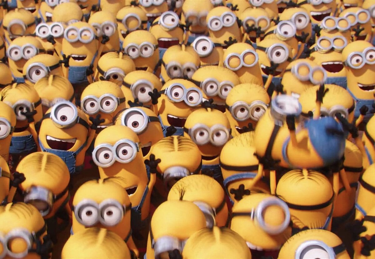 Во всех фильмах, где присутствуют эти желтые чувачки, они действуют вместе. Миньоны представляют из себя толпу. Мы как зрители не можем сделать четкий вывод об умственных способностях отдельных миньонов, ведь их поведение характеризуется «бессознательным импульсом толпы», а не индивидуальной деятельностью мозга. Все эти процессы описываются в работе Г. Лебона «Психология масс». Когда индивид становится частью толпы, его уровень личностного развития опускается в несколько раз - поэтому мы и считаем миньонов глупыми. «интеллектуальный уровень толпы равняется интеллектуальному уровню самого глупого ее представителя, поделенному на число ее членов» Находясь вместе, они превращаются в неконтролируемую массу, которой руководят инстинкты. Еще одна особенность толпы - необходимость в лидере. Толпе нужен тот, кто будет ею руководить. Вот и миньоны без хозяина впадают в депрессию. Кстати, с французского «minion» переводится как «преданный слуга» Отсюда вытекает и идея миньонов, как трикстеро