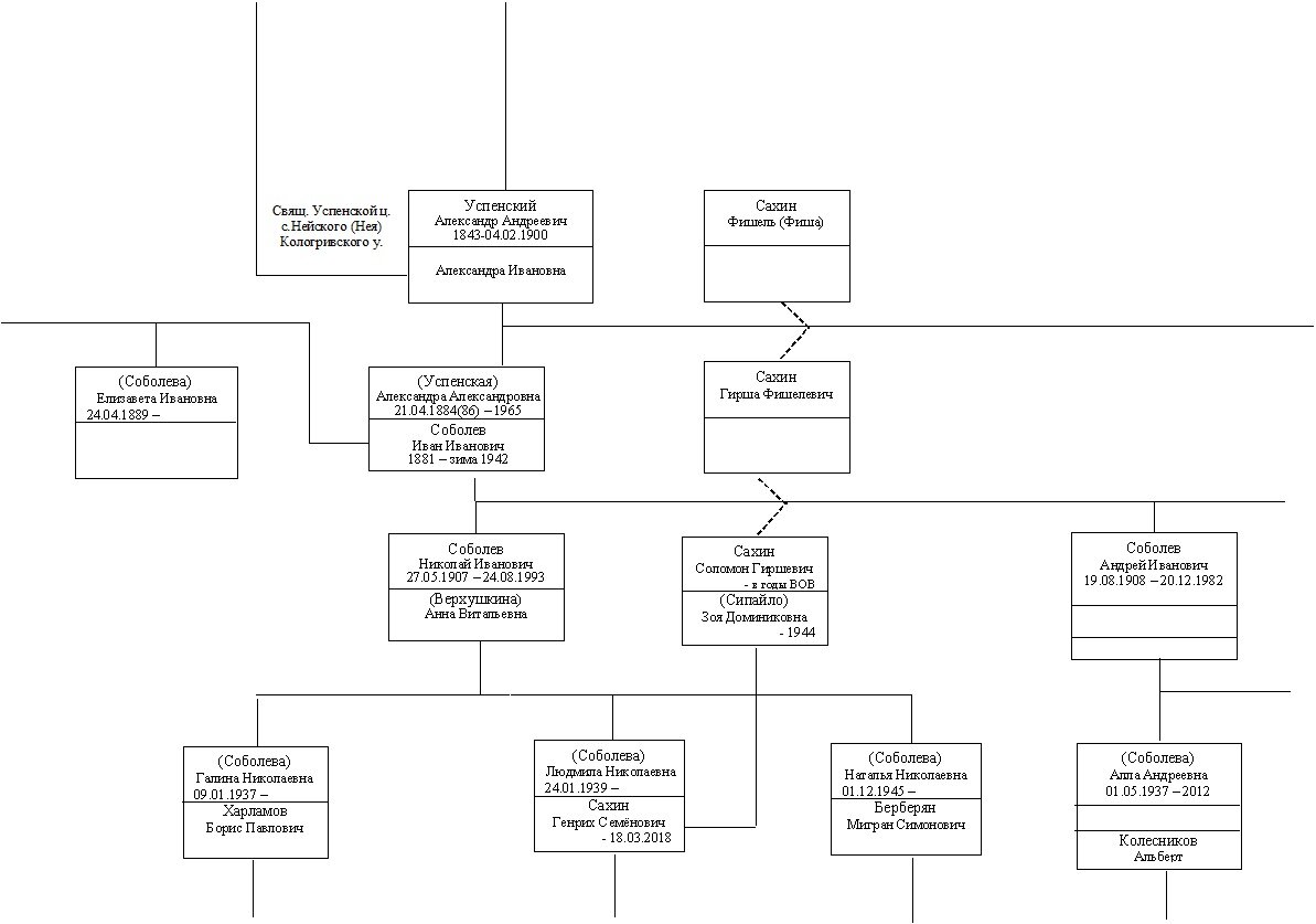 Генеалогическое дерево Успенских (к Соболевым) Представлен один лист (№ 8) генеалогического дерева Успенских (к Соболевым). Полное содержание - 3 ряда по 5 листов можно