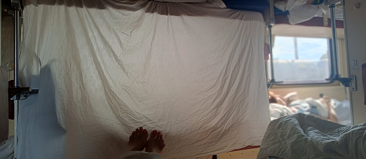 В прошлой статье я немного рассказала про изношенный поезд 🚉 в котором поехали в Анапу. Я все-таки тот еще позитивщик, потому не хочу искать изъяны. И не люблю когда люди ныть начинают на ровном месте. Вагон может быть и старый, но уже в 6 утра мы будем на море ⛵. Билеты покупала за 90 дней, зайдя в приложение РЖД в 8 утра 🕓. Мест в купе почему-то не было в продаже (хотя такие вагоны в этом поезде имеются), но и на том спасибо, купила 4 билета в плацкарте рядом друг с другом. Через час и того не было уже 😅. А достать места на поезд экспресс Москва Анапа, который идёт 22 часа, оказалось совсем нереально. Знаю людей, кому не удалось поехать этим летом на море - все по той же причине отсутствия билетов 🎫, так что хоть такие места купила, чем богаты тем рады 🤗. Есть большой минус лично для меня: холодный кондиционер... Горло разболелось мощно, надеюсь далеко не зайдёт.. Захотела что-нибудь острого 🌶️ и горячего, муж предложил... Доширак😄🤭. Блин, еда богов! 😂 Я не помню, когда