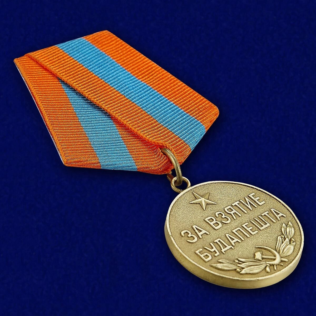 9 июня 1945 г. были учреждены семь советских медалей, связанных со взятием или освобождением европейских столиц и города-крепости Кенигсберг. За участие в овладении столицами и городами Германии и ее сателлитов вручались медали «за взятие», а столицами государств, покоренных Германией, – «за освобождение». Все медали выполнены из латуни в форме круга диаметром 32 мм. На оборотной стороне каждой медали указана дата события, в честь которого и была учреждена награда. Медаль «За взятие Будапешта» Награждены более 360 тыс. чел. Она упоминается в песне на стихи М.В. Исаковского «Враги сожгли родную хату». На нашей экспозиции представлены шесть медалей «За взятие Будапешта», среди них те, которых были удостоены Маршал Советского Союза Р.Я. Малиновский, генерал армии В.Ф. Маргелов, инженер-полковник В.С. Серегин. Медаль «За освобождение Варшавы» Награждены около 700 тыс. чел. В дореволюционной наградной системе существовали две медали, связанные со взятием Варшавы русскими войсками, а в с
