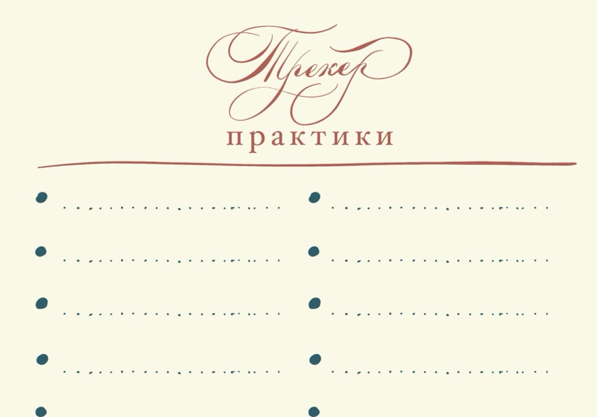Дорогие, привет! Ловите трекер для вашей практики! В нём можно отслеживать свой прогресс, записывать даты и что вы делали, это приятная часть замечания своей жизни.