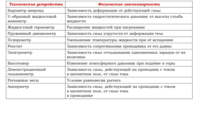 Установление соответствия:"Технические устройства и физические закономерности"(задания на 2 балла в ОГЭ по физике)