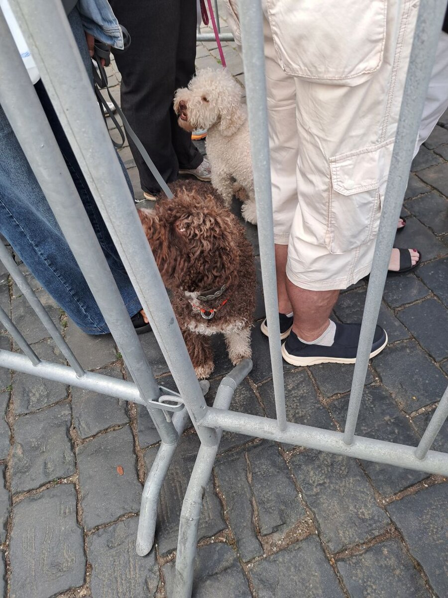 А вот эти люди с собаками! Я такого ещё не видела. Привели к тебе знакомиться. Специально приехали с питомцами своими ненаглядными!